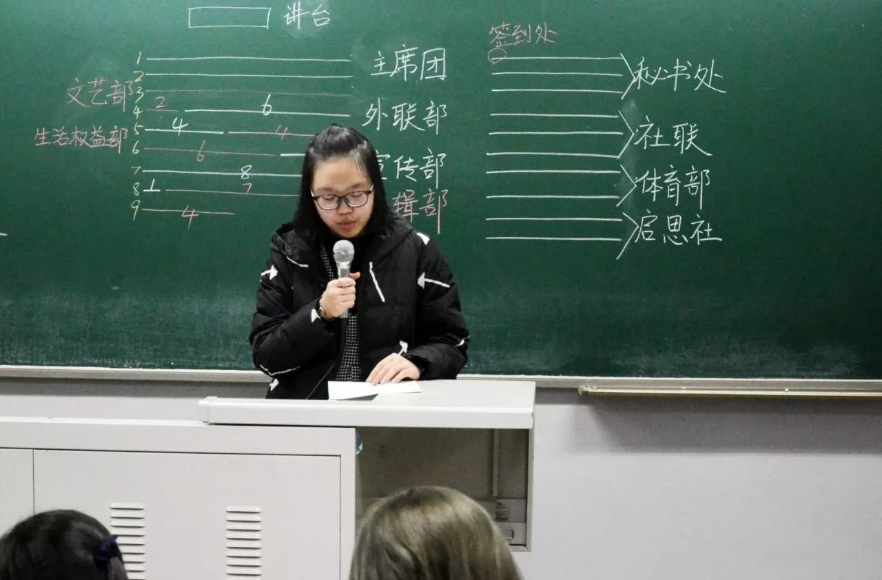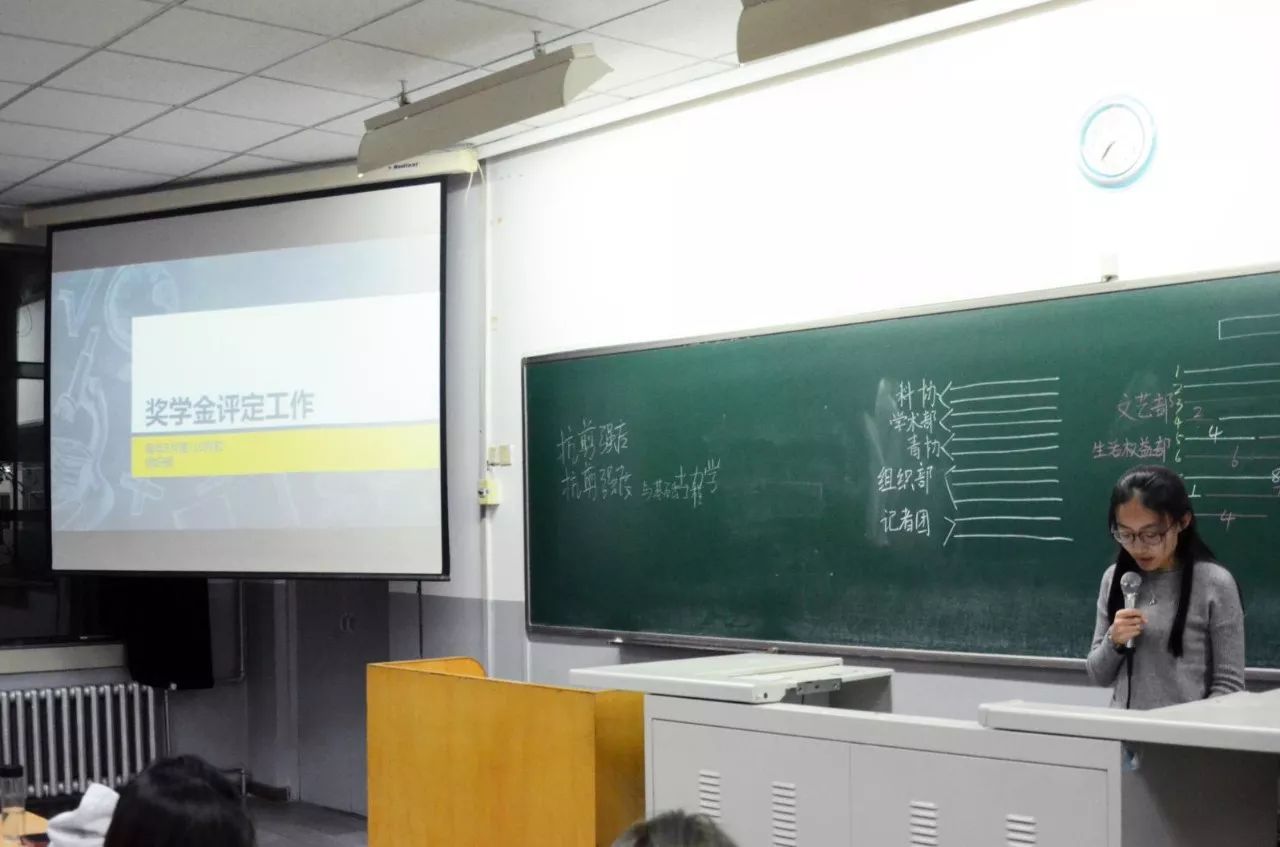 之后,副主席李子曦主要就组织部的奖学金评定工作做了较为详细的介绍。随后,副主席杨铭介绍了宣传部和编辑部近两个月以来的工作成果,跟大家分享如何处理好学习与工作的关系,并提出要展望未来,规划人生。接着,记者团团长谢佳昀与大家交流了自己加入学生会的心得体会。