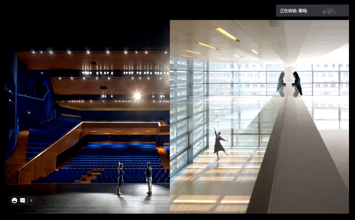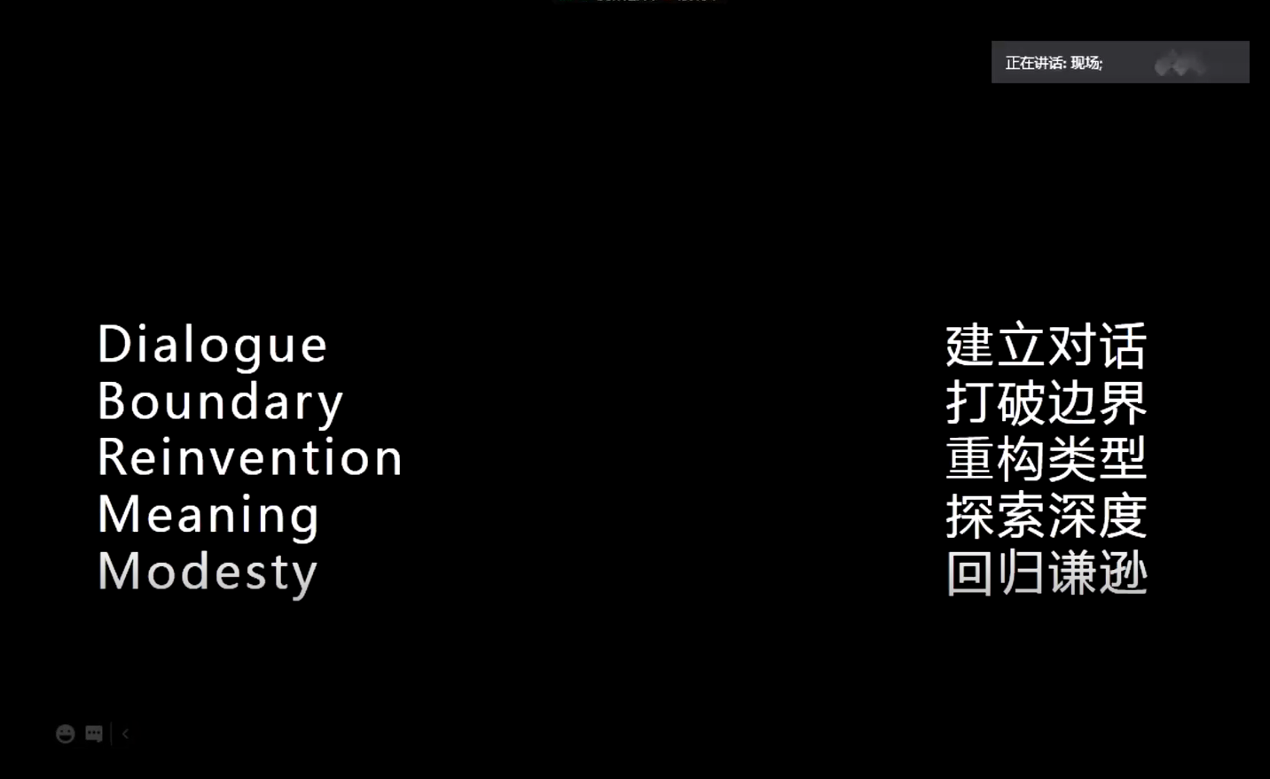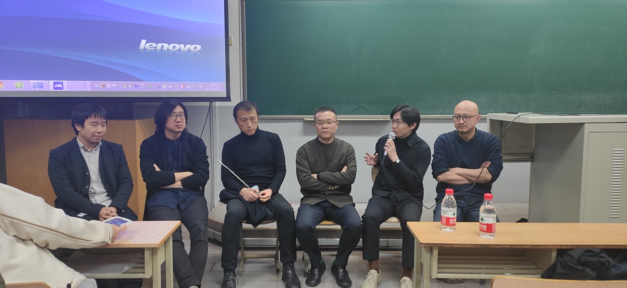 李虎向现场观众及线上听众分享了其工作室近几年的多个作品:UCCA沙丘美术馆、山谷音乐厅、上海油罐艺术中心、深圳坪山大剧院等,通过这些作品引出了建立对话、打破边界、重构类型、探索深度、回归谦逊五个话题,讲述了他在建筑设计中对于建筑与时代对话的思考。他认为建筑对话不仅仅是简单的聊天与提问,建筑师有责任和能力去构筑建筑对话关系的存在与可能性。李虎结束个人作品分享后进入六人对谈与观众自由提问环节,李虎、金秋野、程艳春、王韬、蒋蔚、任中琦六位老师对建筑教育、作品特征以及建筑逻辑等问题展开热烈讨论并发表个人观点,同学们也踊跃发言并提出多个问题,各位老师逐一详细解答。