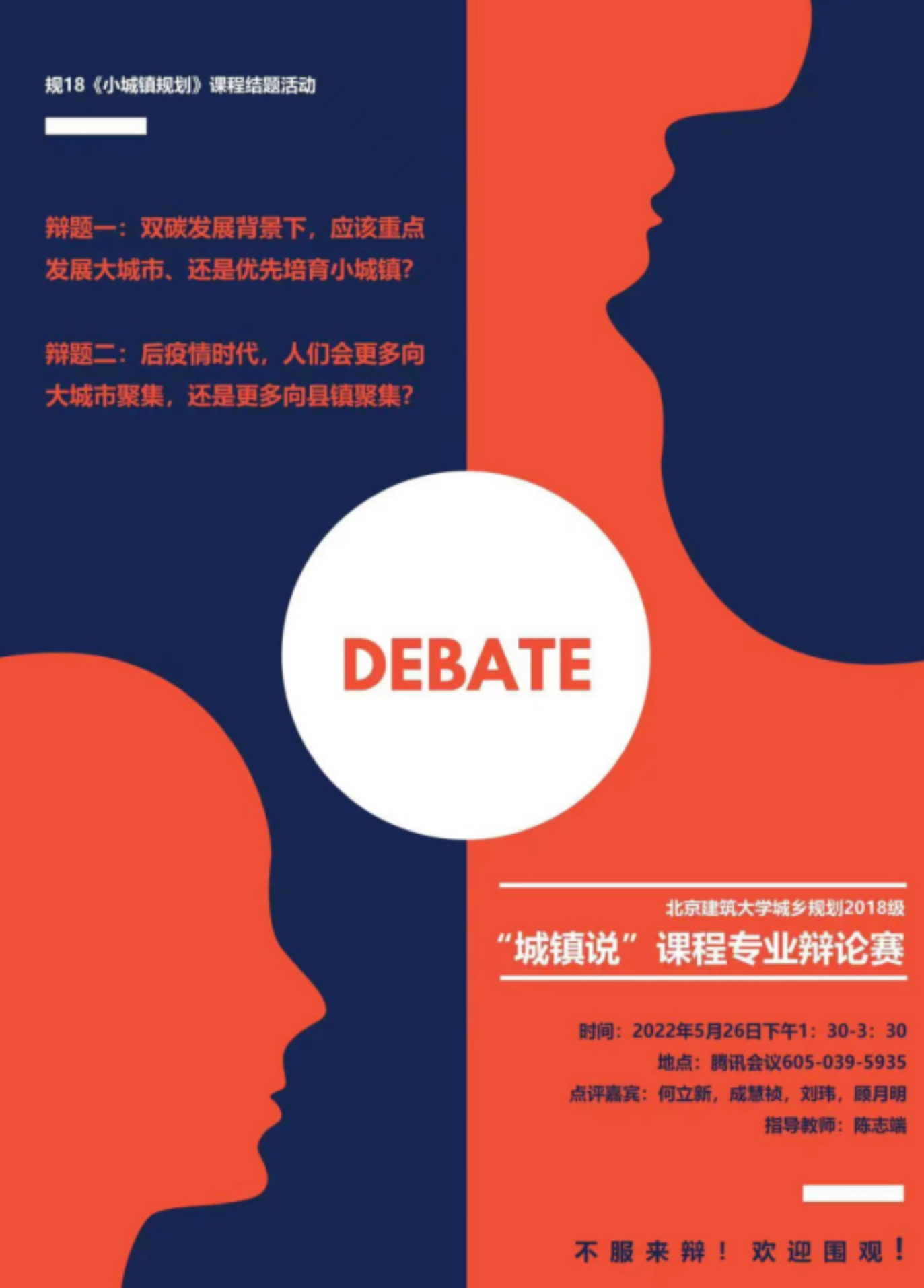 什么样的城镇类型能更可持续的支持社会的健康发展,是大城市还是小城镇?“双碳”发展背景下,应该重点发展大城市,还是优先培育小城镇?疫情当下,大城市“蚁居”更香,还是“小镇青年”更酷?5月26日,一场别开生面的线上辩论赛在《小城镇规划》课程的腾讯会议室热烈举行。