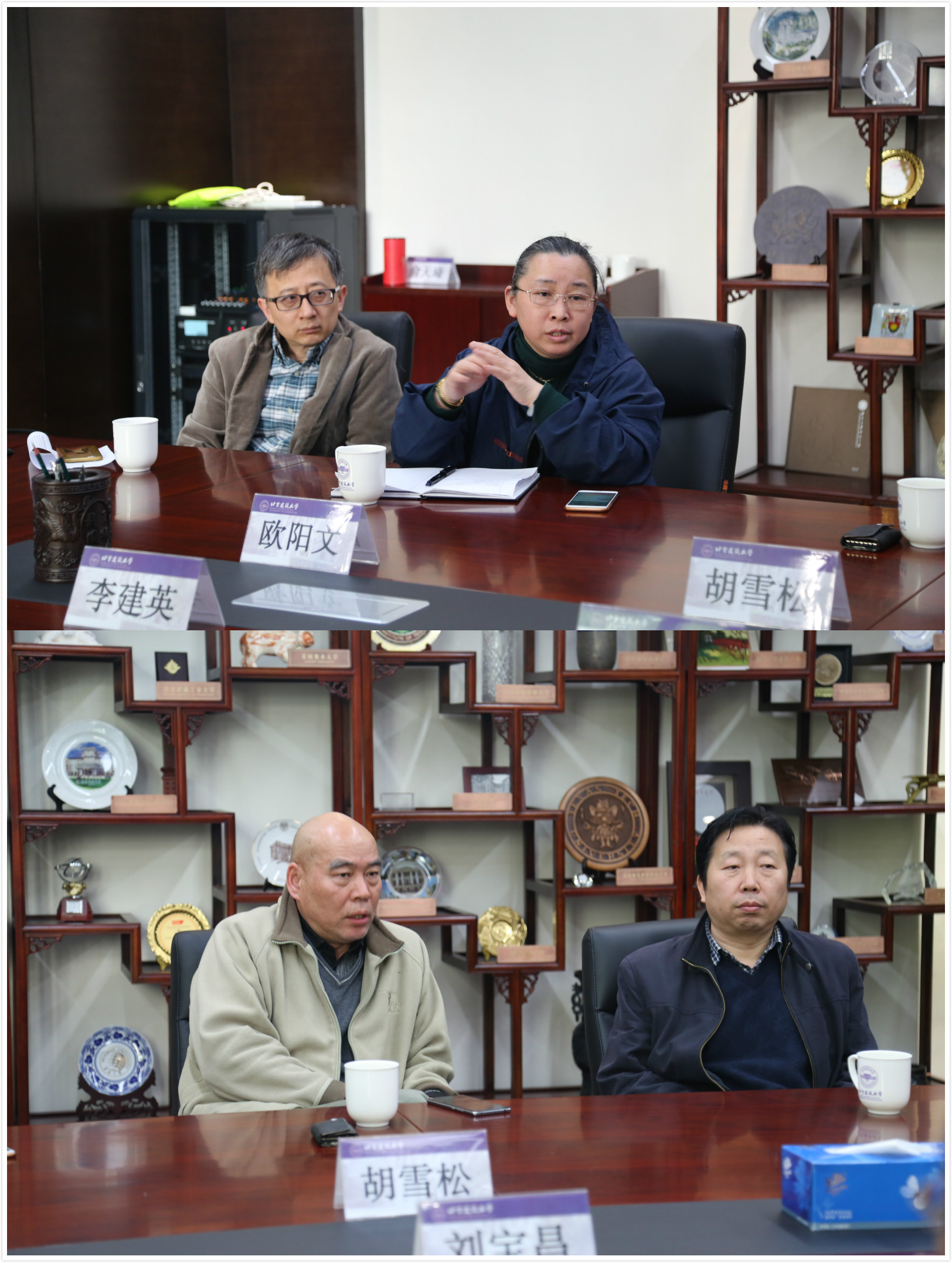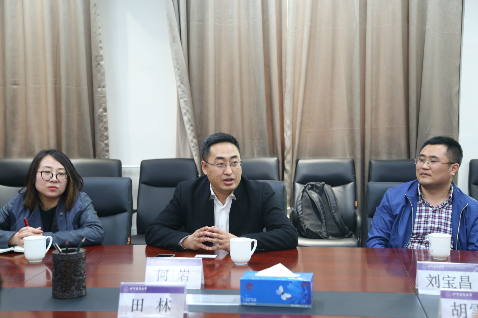 2017年4月13日下午,长春400全讯白菜网建筑与规划学院由何岩院长带队,一行四位老师来我校400全讯白菜网进行参观交流。400全讯白菜网党委书记田林、副院长胡雪松、建筑系主任欧阳文、建筑物理实验中心主任刘博、数字化实验中心主任陈玉龙、院办主任刘志刚和科研秘书何静涵参加了交流座谈。