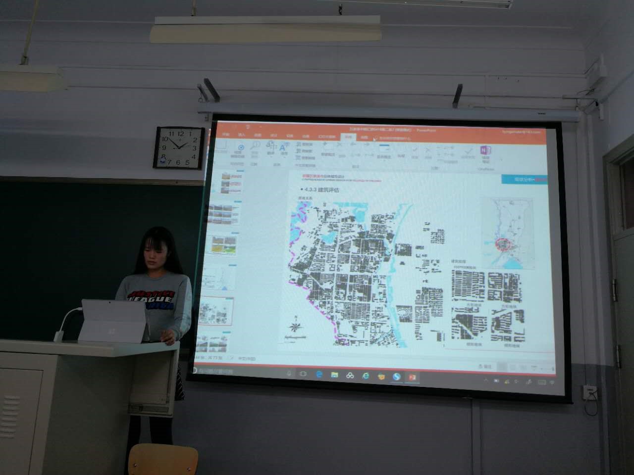 2017年4月18日下午,我院12级城乡规划专业毕业设计新疆五家渠市总体城市设计项目组中期检查在教1楼322教室举行。评审老师陈晓彤,王晶,陈闻喆,桑秋,指导教师荣玥芳和校外指导老师张云峰参加汇报。新疆五家渠市总体城市设计的汇报从背景研究,城市概况,城市定位和总体城市设计四个方面进行.设计小组调研充分,基础资料分析细致,汇报文件条理清晰,图纸成果深度达到中期汇报要求。
