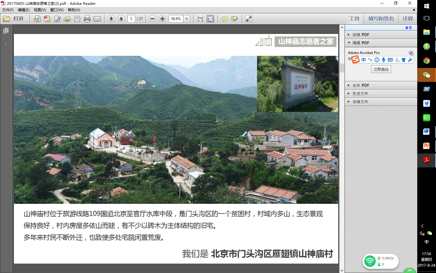为了更好的聚焦农村建设,引导低收入村提升文化内涵,让学生能够发挥专业所长,研究当地特色文化。2017年7月,400全讯白菜网联合校党委宣传部,赴延庆区井庄镇开展了为期两周的“秀美乡村,成风化人”社会实践活动。团队成员走进基层,走进群众,先后走访了胡家营村、柳沟村、王仲营村、艾官营村等多个传统村落,结合当地民俗旅游发展状况,在村内进行了走访调研,了解村庄的历史故事和发展状况以及文化和设施建设,并通过宣讲的形式向村内居民进行反馈。本次调研活动与延庆区委宣传部构建“大家做宣传、对大家做宣传、把宣传工作做大”的大宣传格局相呼应,利用文化与创新思维结合的有效方式,传播村落优秀文化,探索弘扬社会主义核心价值观。