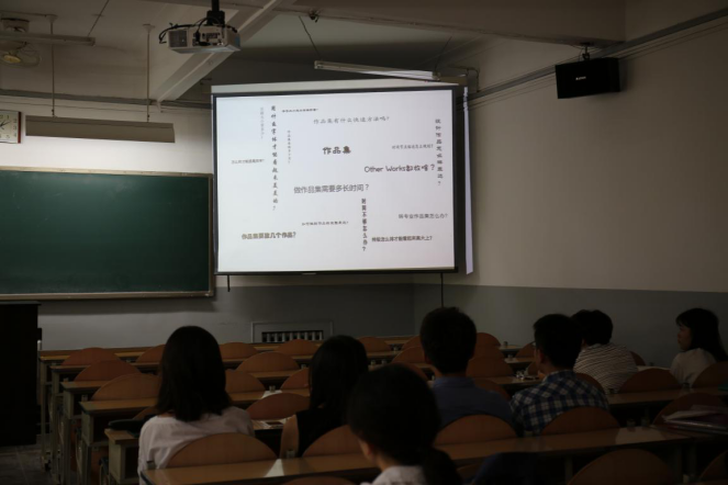 活动开始后,李老师以问题为导向,首先对毕业班和次毕业班同学们在制作出国作品集存在的共性问题进行了汇总:“出国作品集有什么快速方法吗?”、“做作品集需要多长时间?”、“作品放几个合适?”、“怎样才能让作品集看起来高大上?”、“排版?字体?”......。针对同学们在制作作品集存在的困惑,指出,作品集制作要坚持先整理再设计的原则;前期要对学习期间的所有作品集按照类别进行彻底的整理,作品集设计应坚持循序渐进、不断完善,通过持续改进来提升自己的设计能力。