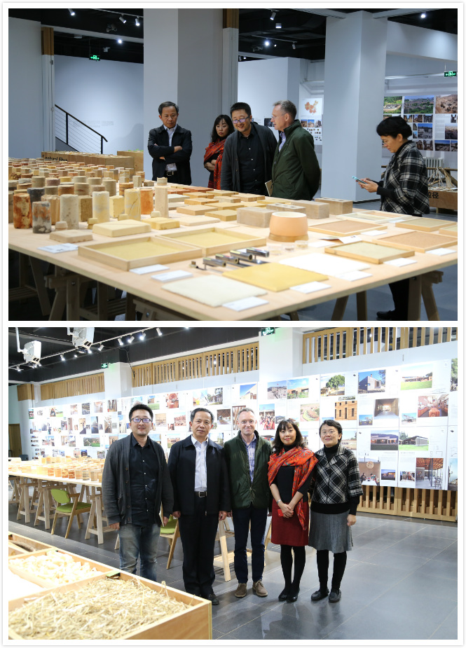 随后,在穆钧教授的带领下,Ian校长参观了位于我校创空间的“土生土长”生土建筑实践京港双城展。