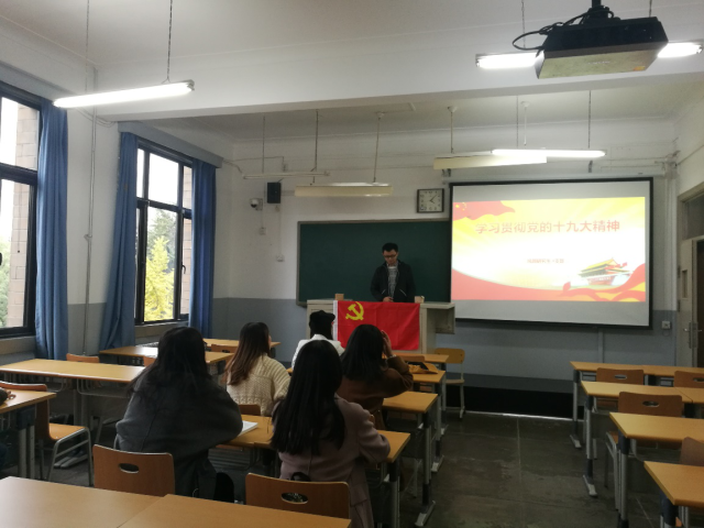 10月30日,在孙喆老师的带领下支部师生党员深入学习了党的十九大报告内容。党的十九大主题是:不忘初心,牢记使命,高举中国特色社会主义伟大旗帜,决胜全面建成小康社会,夺取新时代中国特色社会主义伟大胜利,为实现中华民族伟大复兴的中国梦不懈奋斗。报告分13个部分:一、过去五年的工作和历史性变革;二、新时代中国共产党的历史使命;三、新时代中国特色社会主义思想和基本方略;四、决胜全面建成小康社会,开启全面建设社会主义现代化国家新征程;五、贯彻新发展理念,建设现代化经济体系;六、健全人民当家作主制度体系,发展社会主义民主政治;七、坚定文化自信,推动社会主义文化繁荣兴盛;八、提高保障和改善民生水平,加强和创新社会治理;九、加快生态文明体制改革,建设美丽中国;十、坚持走中国特色强军之路,全面推进国防和军队现代化;十一、坚持“一国两制”,推进祖国统一;十二、坚持和平发展道路,推动构建人类命运共同体;十三、坚定不移全面从严治党,不断提高党的执政能力和领导水平。