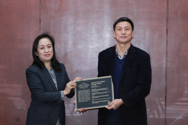 联合国教科文组织北京办事处文化部负责人Himachuli Gurung女士向我校校长张爱林颁发奖牌