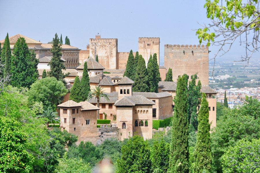 在树木葱茏的山顶,150米高的阿尔汉布拉宫高高地耸立在城市上空,与对面中世纪建造的阿尔贝辛区和谐地融为一体。