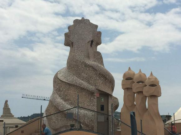 (在烟囱山铺满玻璃碴子,也表明了高迪对权威的挑战)
