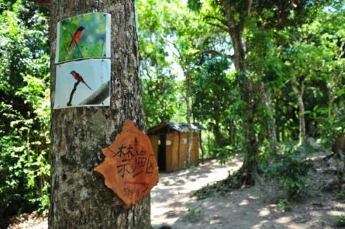 车沿着公路缓缓驶向雨林,这是与海南三亚的天涯海角完全不同的景致——榕树盘根错节,野花竞相开放,白头鹎在大树顶端轻啼,路两旁叫声不断的是不知名的野蛙,但只闻其声,不见其影。