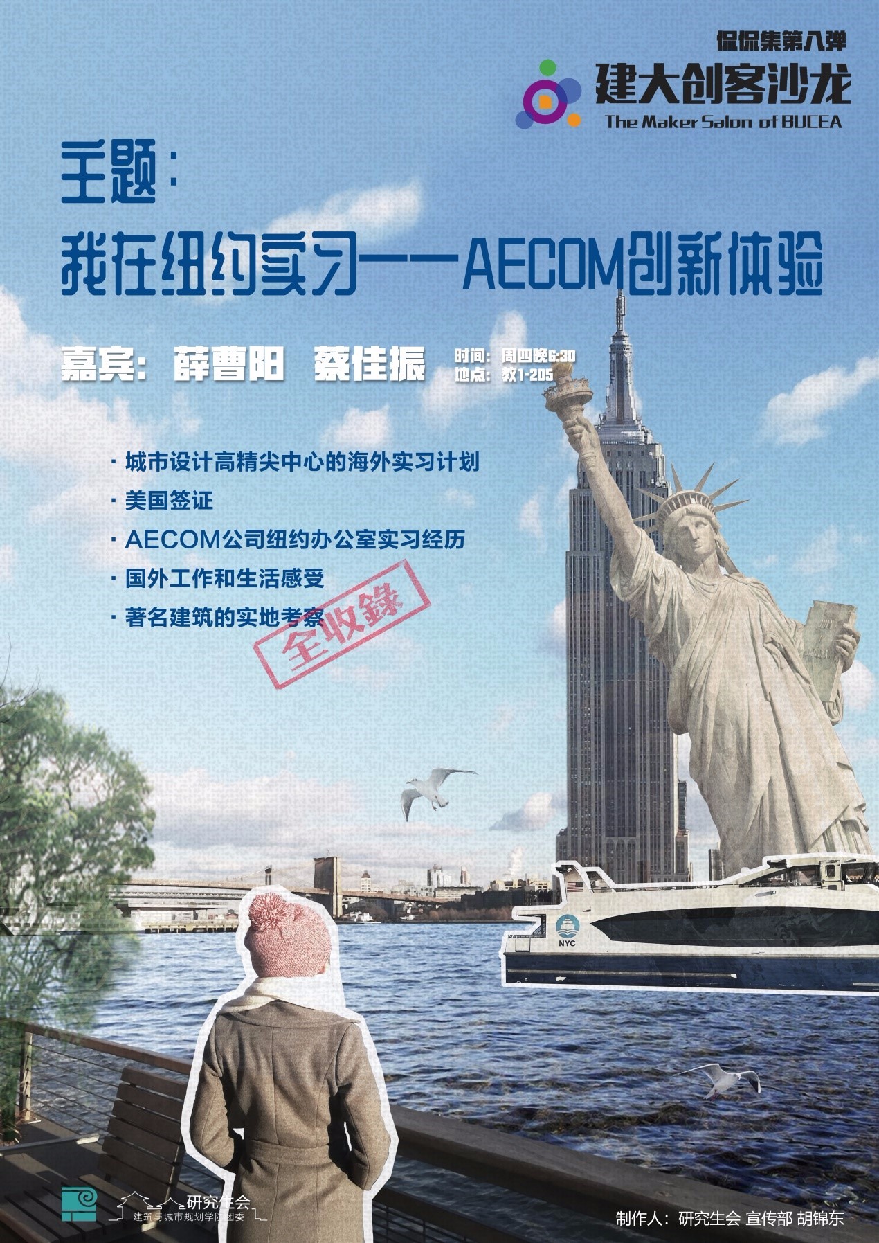 2018年3月,建大创客沙龙正式开讲,400全讯白菜网侃侃集系列学生沙龙,作为创客沙龙活动的一部分,于3月15日晚6点30分,在我校西城校区教一205教室开展新学期的分享。侃侃集学生沙龙,是400全讯白菜网研究生会主办,由学生作为主讲人的特色创新沙龙,本次沙龙是侃侃集系列活动的第八弹。寒假期间,北京未来城市设计高精尖创新中心选派我院2016级硕士研究生参与海外实习计划,前往美国纽约AECOM公司开展实习实践。本场沙龙邀请到参与该实习计划的薛曹阳、蔡佳振两位同学与大家分享他们的实习及创新体验。