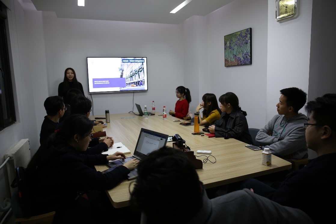 薛曹阳同学首先介绍了参与这个海外实习计划之前自己在学习、语言方面做的准备工作,以及去美国之前对住宿、通讯、签证、交通等方面做的各方面考虑。随后,介绍了AECOM公司令人神往的工作模式,其中她回忆到:在公司里面实施无上下等级的工作模式,人人可提出自己见解,各自发挥自己的优势,为项目投入最大的热情;就算是新人也可以了解到各个项目的进展情况;面对他人的疑难问题,就算再忙公司员工都会耐心指导;灵感的交流不拘泥于场所,在任何地方都可以进行讨论与交流。让她感受到了被尊重与存在感,最后,她也介绍了她在美国的建筑与风土人情的考察之旅。