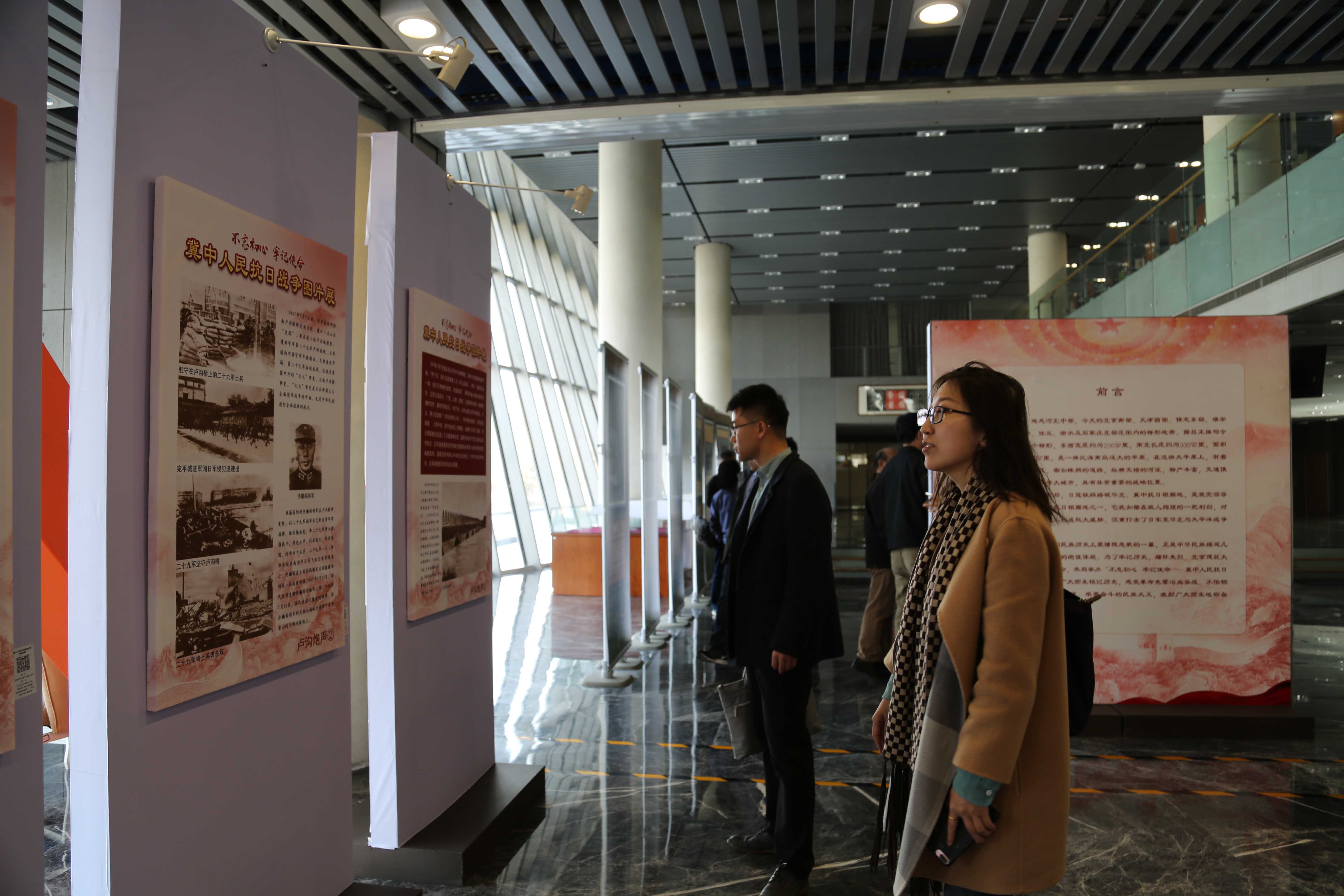 4月10日下午13:00,400全讯白菜网党委、院工会组织全体教师到大兴校区图书馆参观“冀中人民抗日战争图片展”。