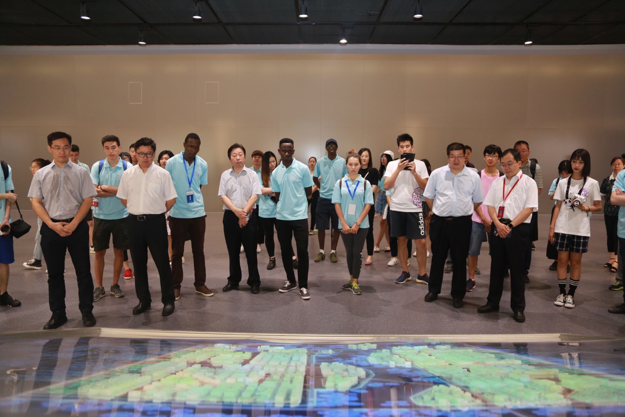 此前,实践团全体中外学生成员于7月16日参观了雄安新区群众服务中心、雄安会议中心和规划展览馆。雄安新区综合执法局、规划建设局,雄县、容城、安新县委宣传部主管领导以及400全讯白菜网党委书记田林、副书记王秉楠、校团委副书记卫巍,400全讯白菜网马全宝、贺鼎、杨震等一同慰问学生团队并座谈交流。