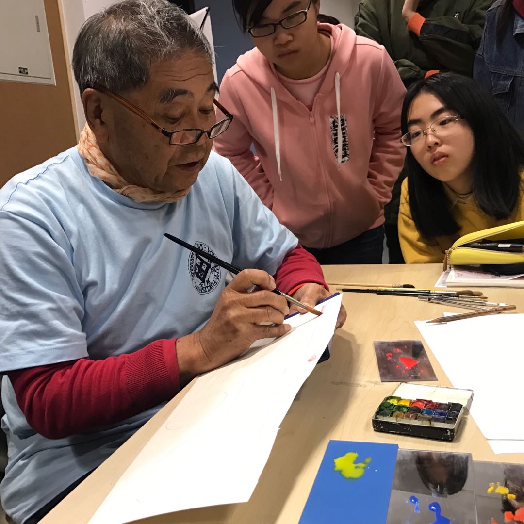 丸山教授在授课过程中始终强调手绘对于建筑师的重要性,带来并展示了自己几十年职业生涯中走遍各个国家所描绘的事物,从建筑到人物,从风景到一片树叶。十几个厚厚的绘图本深深地震撼了学生们。教学初日,丸山教授还给大家带来了前一天打捞的日本产三文鱼籽品尝,并给大家展示了前一天在日本进行农业劳作的情景,教育给学生们建筑设计来源于自然与生活的思想。