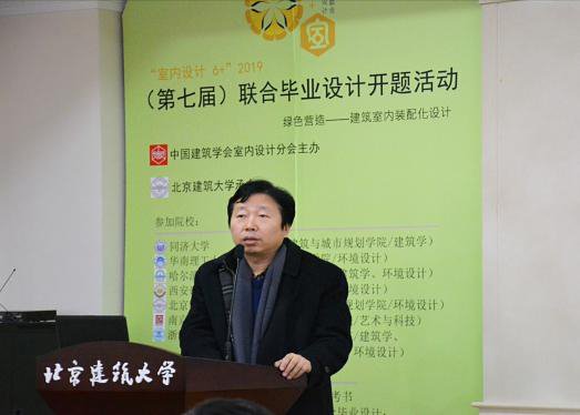 由中国建筑学会室内设计分会(IID-ASC)主办,北京建筑大学承办,《家饰》杂志和颐家家居网等协办,同济大学、华南理工大学、哈尔滨工业大学、西安建筑科技大学、北京建筑大学、南京艺术学院、浙江工业大学共7所高校参加的“室内设计6+”2019(第七届)联合毕业设计活动,于3月2日在我校举办开题开幕仪式。此次开题活动由中国建筑学会室内设计分会理事、建筑与城规学院杨琳副教授主持。