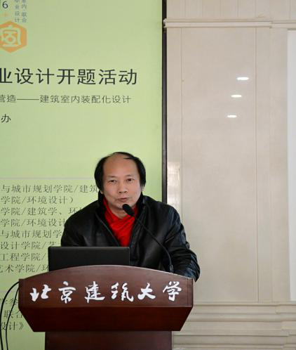 中国建筑学会室内设计分会副理事长、我校设计艺术研究院院长陈静勇教授做活动宣讲
