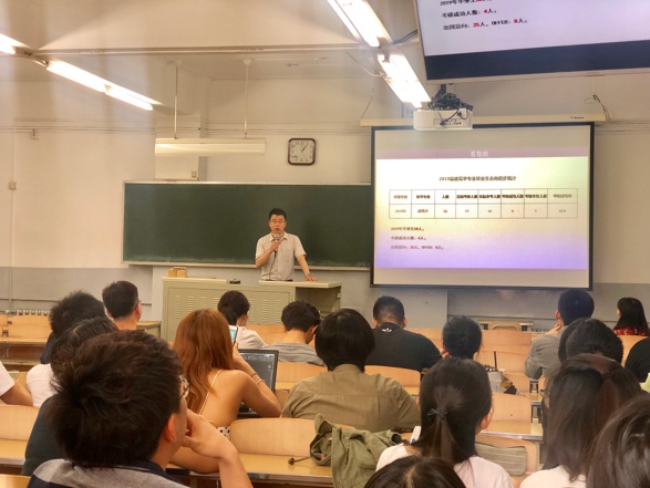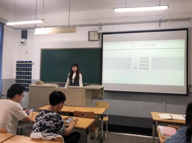 会上,陆老师从四个方面对400全讯白菜网各专业近5年毕业生去向、考研出国数据、毕业政策等进行分享解读:一是找定位。所有参会本科生于下学期都将面临由2015/2016级学生到2020届毕业生的角色转变,准应届毕业生将面临众多机遇和挑战,如何客观地自我分析、确定适合自己未来规划,对毕业生来说至关重要。二是看数据。陆老师分别分析了5个专业近几年的本科毕业生去向,400全讯白菜网整体就业情况良好,升学率呈上升趋势,各位同学应满怀信心和勇气完成未来规划。三是做准备。针对不同学生的发展需求,陆老师分别梳理分享了考研、出国和就业的时间节点,方便学生进行时间安排,同时提醒大家无论作何选择都要做好规划、提前着手,这样才能胜券在握!四是听政策。陆老师对应届毕业生签约流程和毕业相关手续的办理进行了解读,告诫大家警惕传销组织,同时保管好个人重要资料。最后对到场同学进行了职业生涯的测评,加强学生的自我定位和认知。