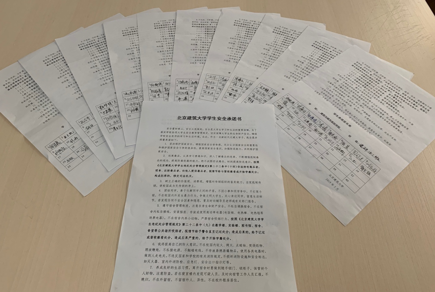 会上学院副书记王秉楠对《北京市控制吸烟管理办法》和校园控制吸烟管理情况进行了重点解读,分析了吸烟的危害,列举了吸烟者的几种错误心理;接着成慧祯老师介绍《北京建筑大学安全承诺书》,重点解读安全和吸烟对大家的影响以及近期发生的警示案例,并要求全体师生从我做起,带动身边人,自觉禁烟控烟,共创无烟校园。最后,各年级学生干部组织班级学生签署承诺书。
