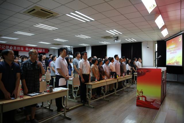 学院党委书记何立新同志带领全体党员重温入党誓词,全体党员举起右拳面向党旗庄严宣誓。