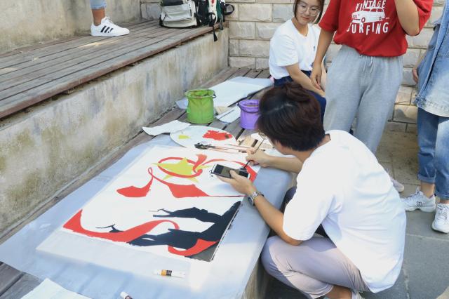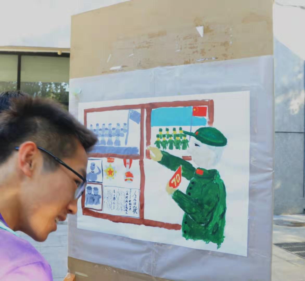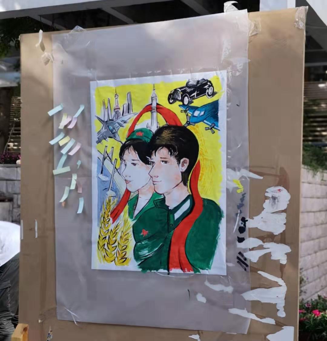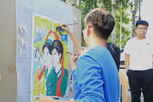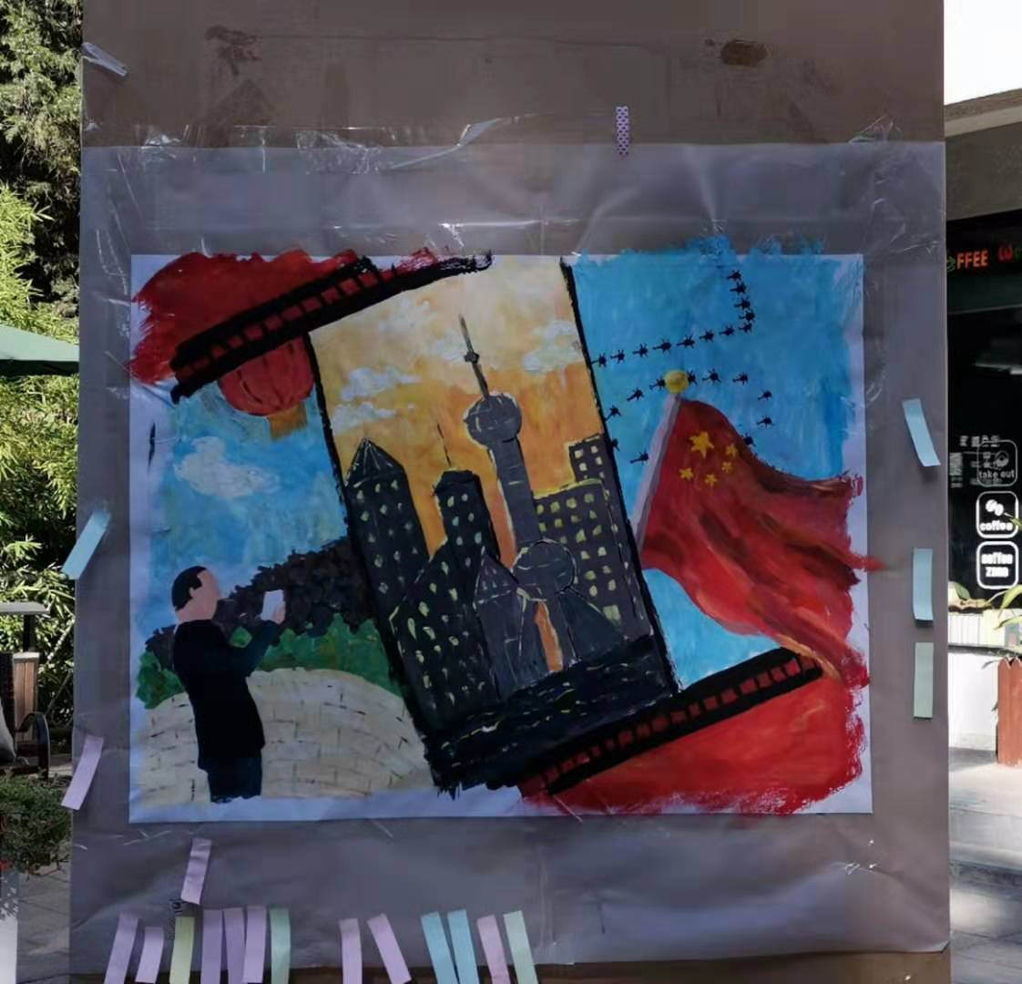 活动期间,同学们4-6人为一队,以“红色芳华”为主题绘制画作。在精心构思画面后,同学们齐心协力,运用了多种表现手法,创作出了属于自己的作品。在这一幅幅画作中,同学们不但描绘出了祖国70年来的日新月异,更重要的是表达了心中对祖国的憧憬和美好祝愿。