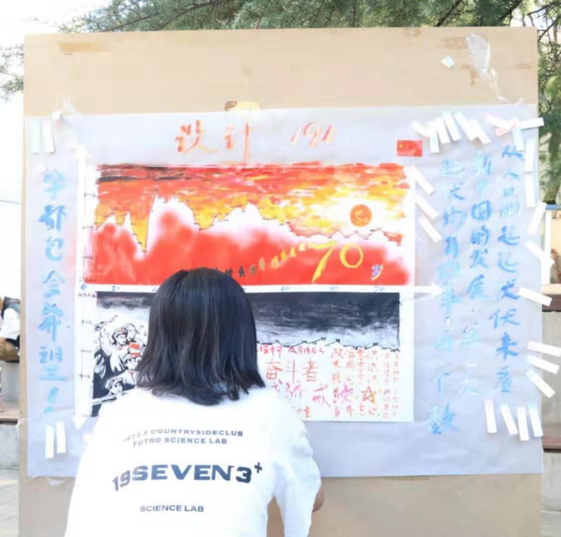 本次涂鸦大赛丰富了我们的校园文化生活,加强了校园文化建设,促进了新生班级内部团结,更重要的是,通过这一幅幅绚丽的画作,我们表达出了对祖国母亲的热爱。在此,祝祖国七十华诞生日快乐!