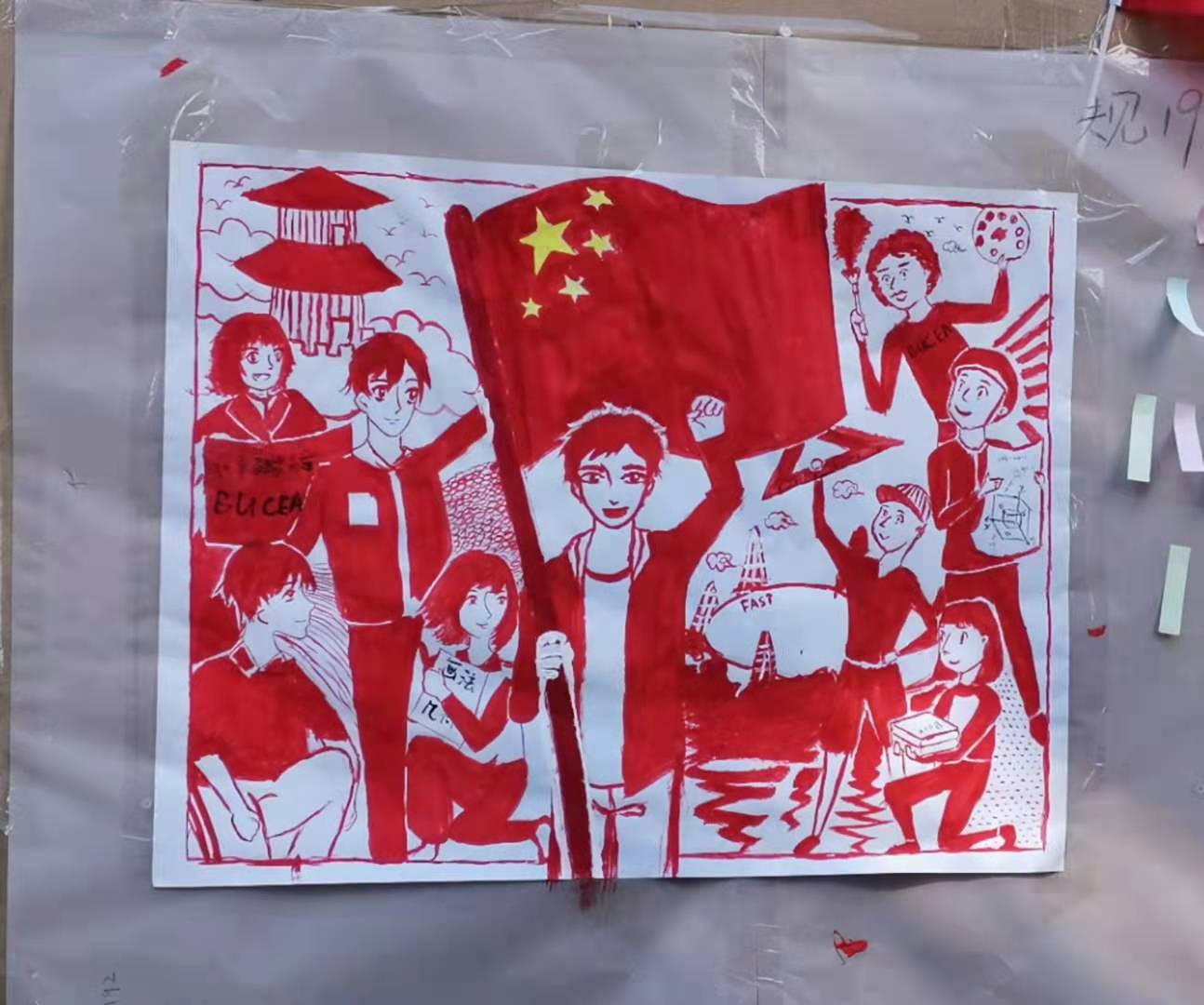 此次活动集结了2019届全体同学。在120分钟的有限时间内,同学们以班级为单位,用精妙的笔触和绚丽的色彩,表达出了对祖国的无限热爱。