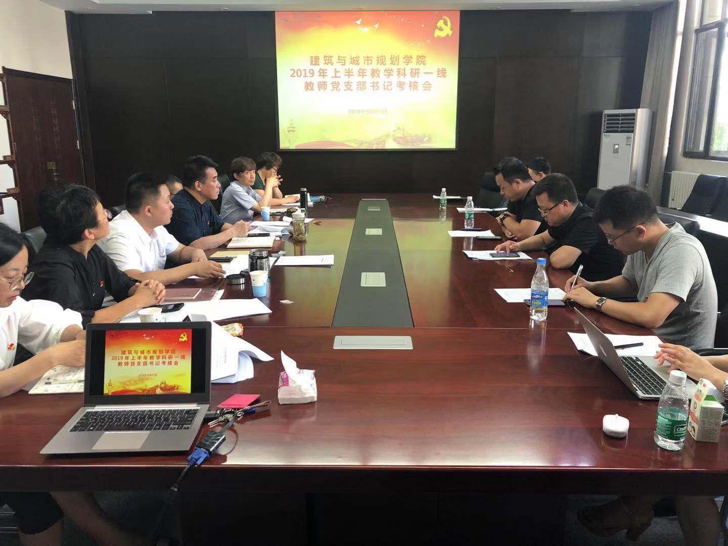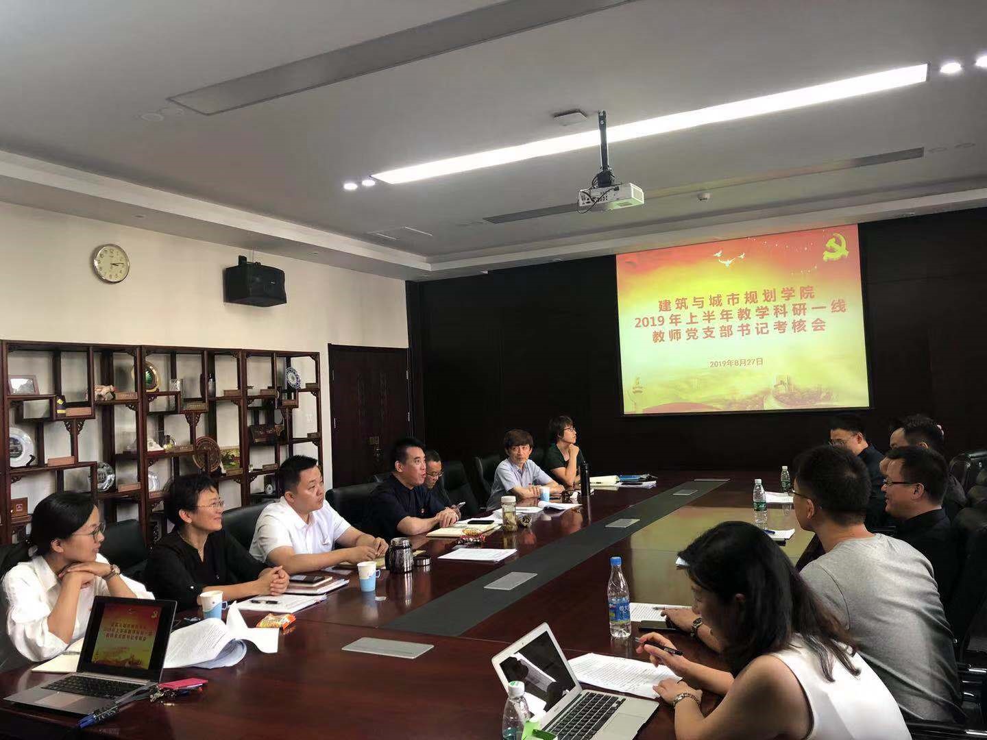 为进一步加强教学科研一线教师党支部书记队伍建设,落实北建大党组发〔2019〕24号《关于开展2019年上半年教学科研一线教师党支部书记考核工作的通知》要求,400全讯白菜网党委组织开展2019年上半年教学科研一线教师党支部书记考核工作。2019年8月27日下午2点,400全讯白菜网党委在教1-128召开2019年上半年教学科研一线教师党支部书记考核会。400全讯白菜网党委委员、教工党支部书记共15人参会,本次会议由学院党委副书记王秉楠同志主持。