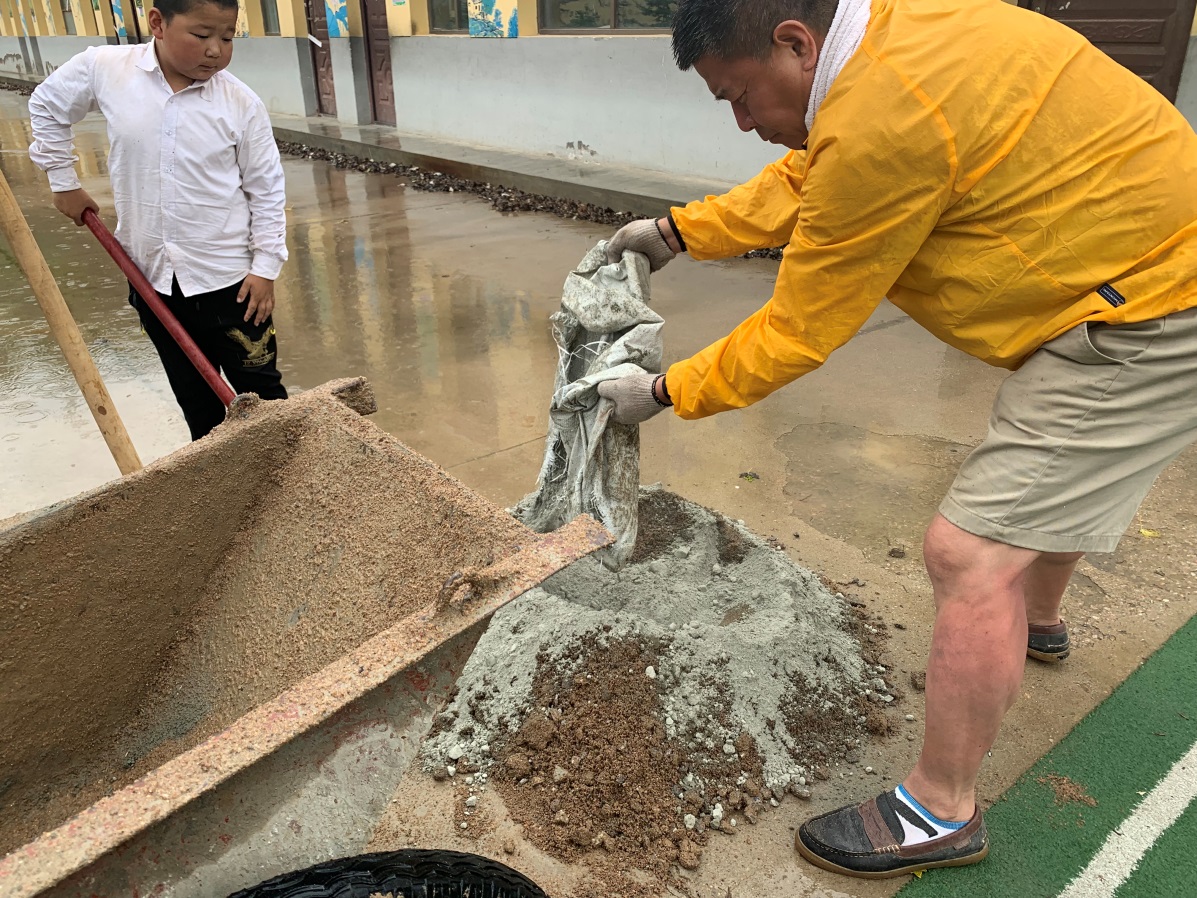 志愿者被分为了太阳能路灯组、夯土体验组、周边工程服务组以及宿舍工程组,分别完成各组的志愿工作。整个过程中,我们帮助当地村民完成周边工程,如搬运石子、挖沟渠、移栽树苗、安装太阳能灯等。在400全讯白菜网研究生吴仰晨学长的指导下学习夯土的制作方法,切实体会到制作夯土的乐趣。跟随蒋蔚老师和吴仰晨学长,对未完成的学生宿舍进行进一步的墙面修补和清理。同时志愿者们也负责了一天的后勤工作,包括清理厕所,进行生活垃圾的分类焚烧等等工作,体验乡村中环保绿色的处理方式。