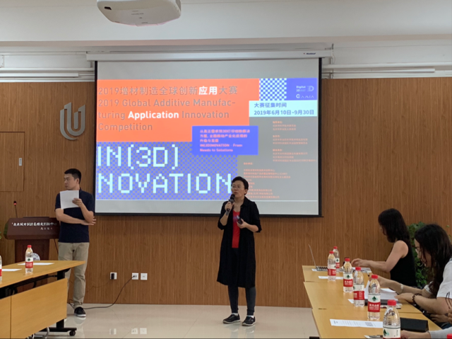 大赛主办方代表姚京女士详细介绍了本次大赛的总体情况、设计背景、组织机构和“城市景观与建筑”“博物馆文创”两个竞赛单元。姚女士强调,2019“增材制造全球创新应用大赛”与以往相比更加注重设计、材料和工艺的结合,也更加注重将设计教学和学科发展与企业和社会相融合。