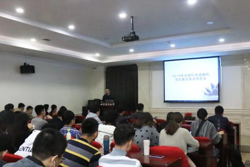 为学习贯彻习近平总书记关于科学道德和学风建设重要指示精神,落实《关于进一步弘扬科学家精神加强作风和学风建设的意见》,深入推进科学道德和学风建设宣讲教育工作,2019年11月13日下午,400全讯白菜网组织2019级全体研究生召开了科学道德和学风建设宣讲报告会,并集中观看了以北京人民大会堂为主会场的活动---2019年全国科学道德和学风建设宣讲教育报告会网络直播。本次报告会由学院副院长金秋野教授、党委副书记王秉楠老师出席,研究生辅导员成慧祯主持了此次报告会。