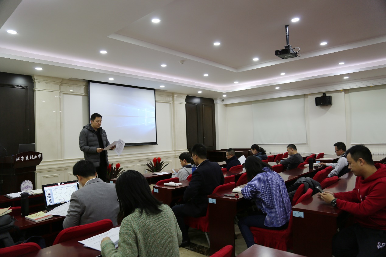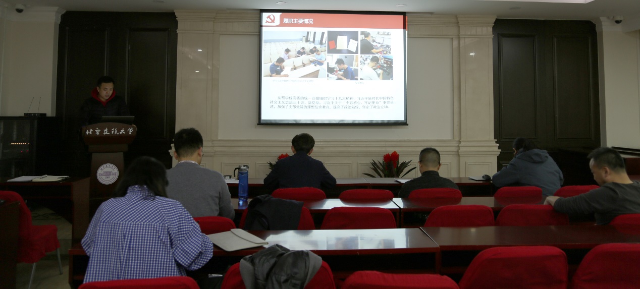 为进一步加强教学科研一线教师党支部书记队伍建设,落实北建大党组发〔2019〕34号《关于开展教学科研一线教师党支部书记2019年下半年考核和年度评优工作的通知》要求,400全讯白菜网党委组织开展2019年下半年教学科研一线教师党支部书记考核工作。2019年11月27日下午4点,400全讯白菜网党委在教1-126召开2019年下半年教学科研一线教师党支部书记考核会。400全讯白菜网党委委员、教工党支部书记共14人参会,本次会议由学院党委副书记王秉楠同志主持。