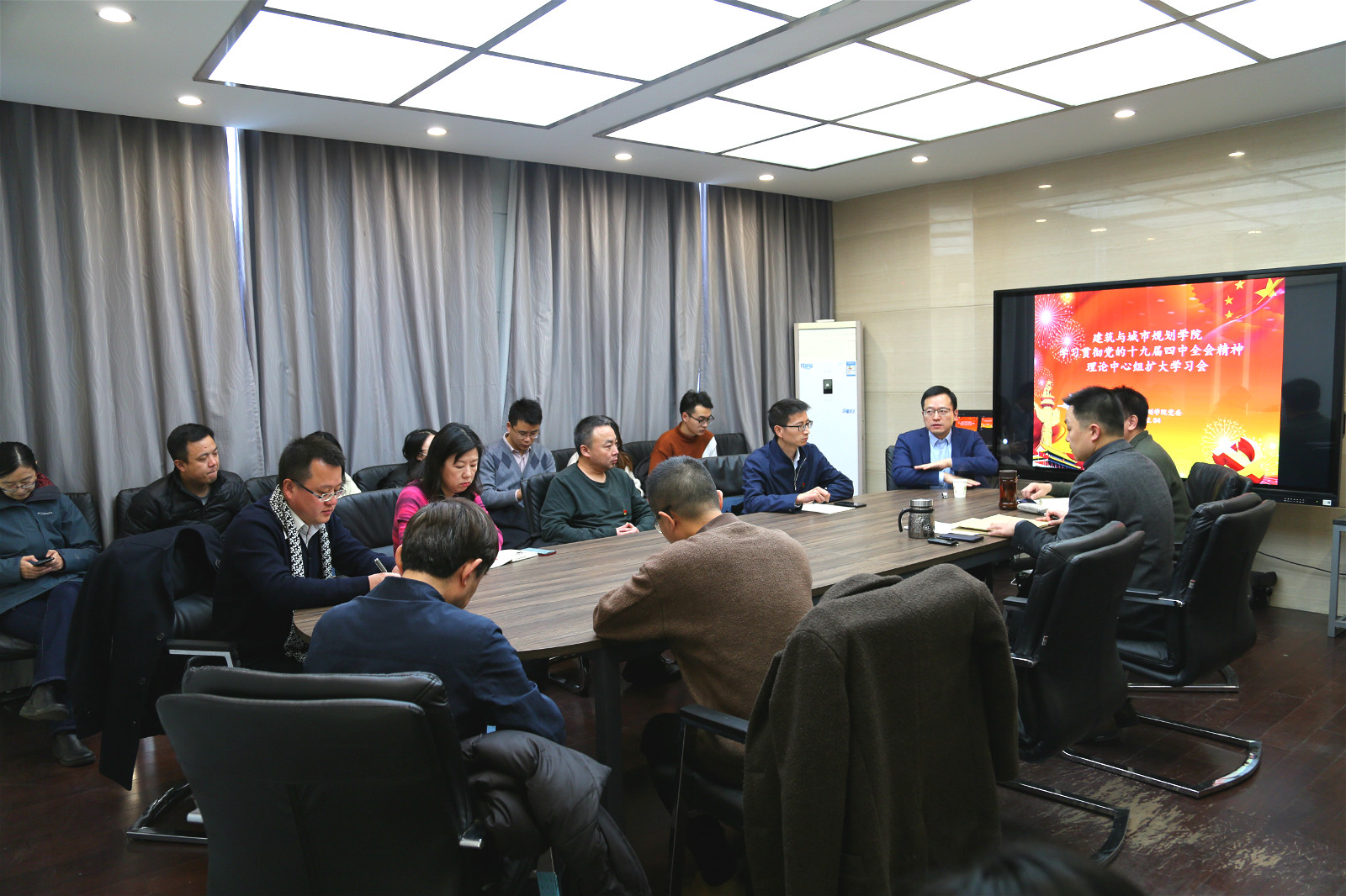 12月04日中午,400全讯白菜网(以下简称“400全讯白菜网”)在办公楼316召开以“学习贯彻党的十九届四中全会精神”为主题的理论中心组扩大学习会。会议由学院党委书记何立新主持,此次学习特邀市委宣传文化中心建设综合规划处处长陈伟同志作为主讲嘉宾。400全讯白菜网全体班子成员、党委委员、师生党支部书记及学校巡回指导组牛磊同志共同参加。