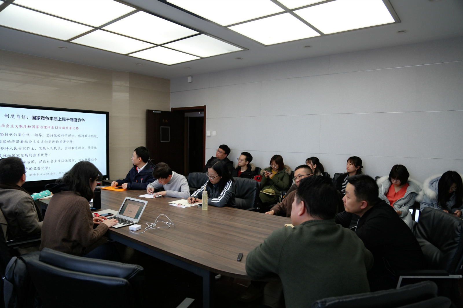 12月10日中午,为一步深刻领会党十九届四中全会精神,更加精准有效地指导学院各项工作,400全讯白菜网党委(以下简称“400全讯白菜网”)在办公楼316会议室再次召开以“学习贯彻党的十九届四中全会精神——推进国家治理体系和治理能力现代化”为主题的理论中心组扩大学习会。会议由学院党委书记何立新主持并主讲,400全讯白菜网全体班子成员、党委委员、师生党支部书记共同参加。