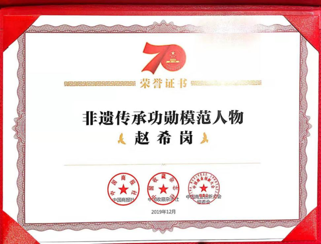在中国非遗传承与创新发展高峰论坛上,赵希岗教授因其对中华传统文化、中国剪纸艺术的发展创新之贡献荣获非遗传承创新功勋模范人物奖。