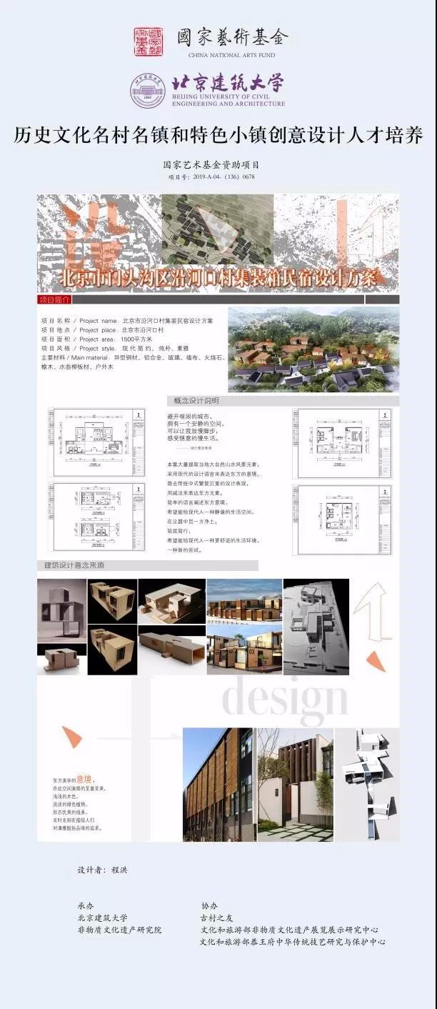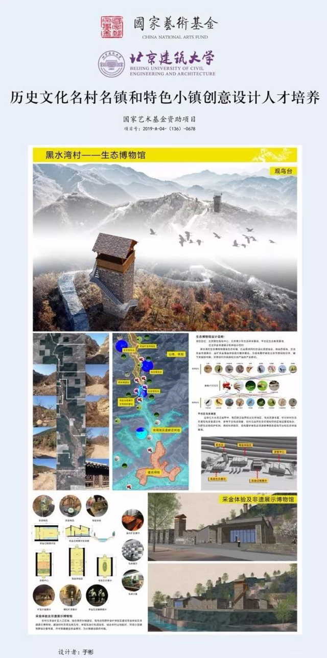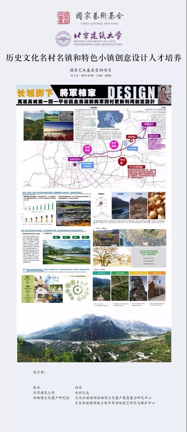 国家艺术基金旨在繁荣艺术创作、打造和推广精品力作、培养艺术人才、推进国家艺术事业健康发展的公益性基金。在国家艺术基金指导下,北京建筑大学组织实施的“历史文化名村名镇和特色小镇创意设计”培训班,得到了北京市怀柔区渤海所村、门头沟区沿河口村,平谷区黑水湾村、将军关村及各协办单位的大力支持。