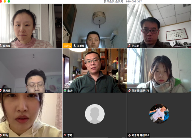 连线开始,王秉楠老师逐一关心了湖北地区研究生同学们的近况,同学们向院领导及老师汇报了平安,他们每天按照学校要求打卡、量体温,目前身体状况良好;针对近期线上教学,同学们提出了自己学业、发展、专业等方面的一些疑问;此外,同学们对于学校提供的口罩等物资表达了感谢。