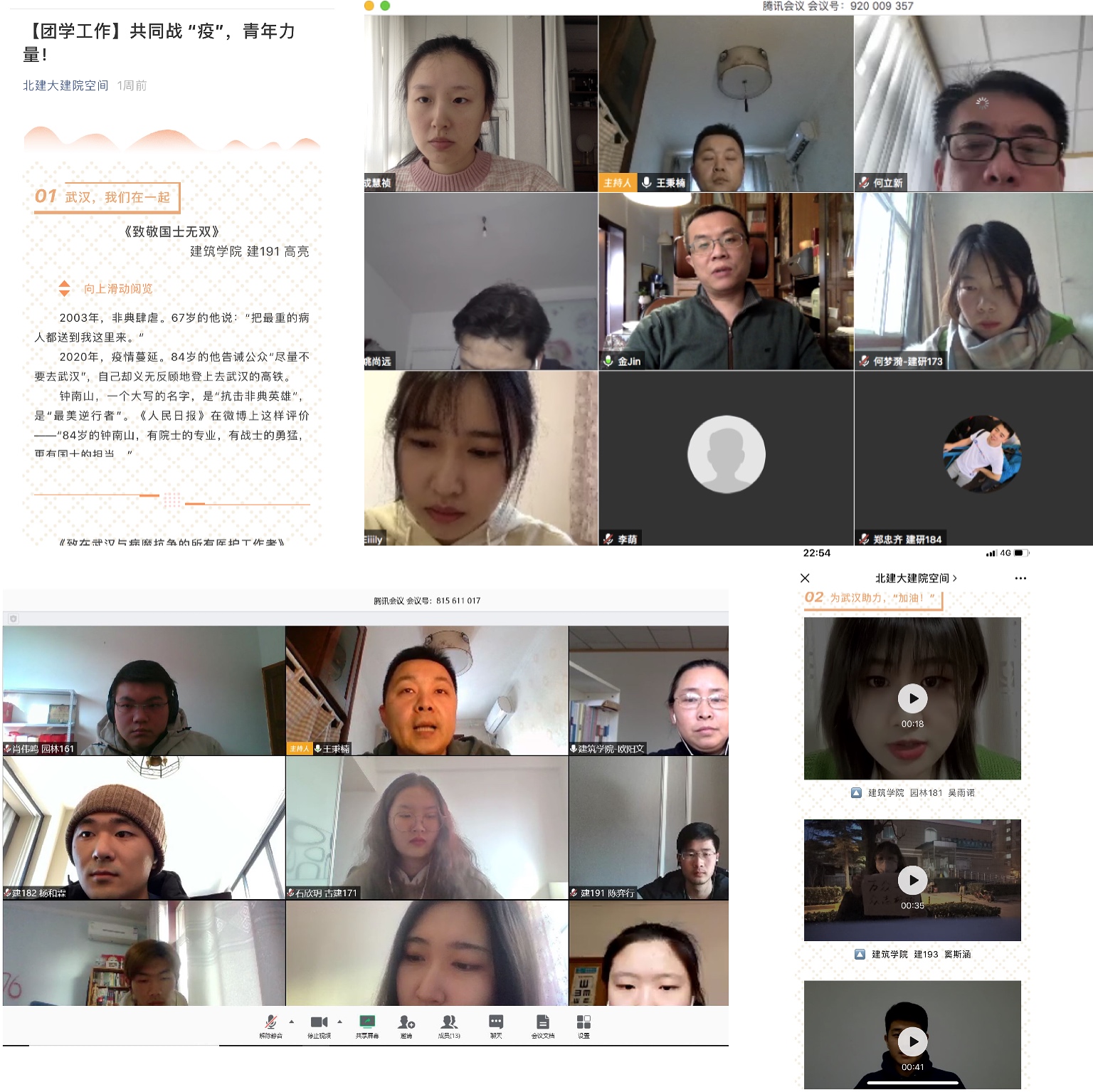 同时,团委学生会积极响应学校号召,组织学生参与“疫情”阻击战,BUCEAers我们并肩作战征集活动,截止2月2日收到学生投稿55篇,来自各地的建院学子们纷纷为武汉加油,为一线的医护人员们加油,为他们送上了真诚的祝福与真挚的鼓励。