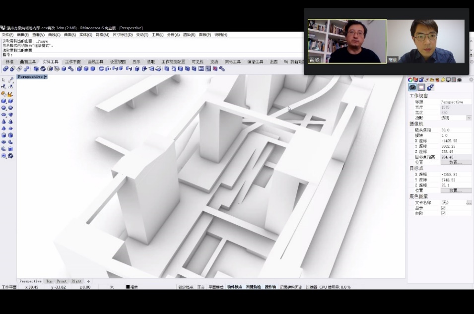 《建筑设计6》的教学由商谦老师和建筑系铁雷老师共同完成。在已经结束的两周历次设计课上,两位老师结合线上设计课的特色对课程模式不断进行调整。过去,由于细致点评和改图的需要,设计课的师生需近距离手绘操作,而有限的空间使其他同学很难全部同时聆听。线上教学带来了屏幕分享和在线批注的可能性,两位老师尝试同时分别对学生的虚拟模型和图纸进行批注和点评,直观而其他同学也能聆听和提出问题,课堂的互动性变得更强。此外,对课堂重点内容和汇报顺序的提前安排,也充分提高了课堂的效率。