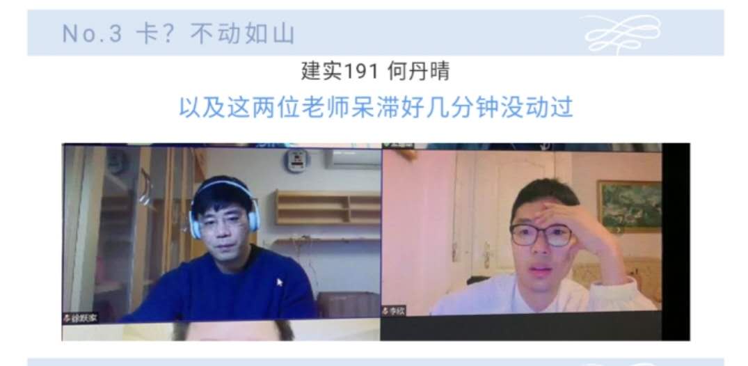 老师们对学生真的是坦诚相待。直播、露脸、真声,调整好状态,准备出镜。可总觉得哪里不对。看不到大家,没有反馈,讲着讲着就忘记还有摄像头这回事了。以前在讲台上踱步、叉手、摸脸、挤眉弄眼的小动作都被摄像头放大,满屏幕除了ppt就只有我了。上完课还自以为讲得精彩,殊不知表情包已合成完毕。