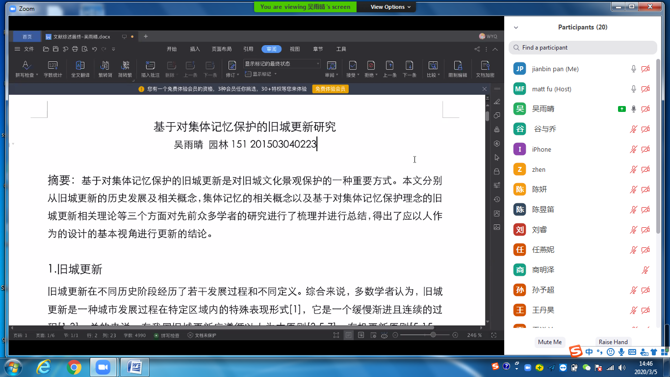 2020年1月底至今,疫情当前,按照我校毕业设计(论文)质量标准不降低、毕业就业时间不推迟的目标要求,以及战“疫”情期间学生不返校、不离家的基本前提下,我校建议风景园林专业联合毕业设计创新开展形式,充分利用现代化手段,做好兄弟高校间的日常沟通以及学生毕业设计在线远程指导和检查工作。