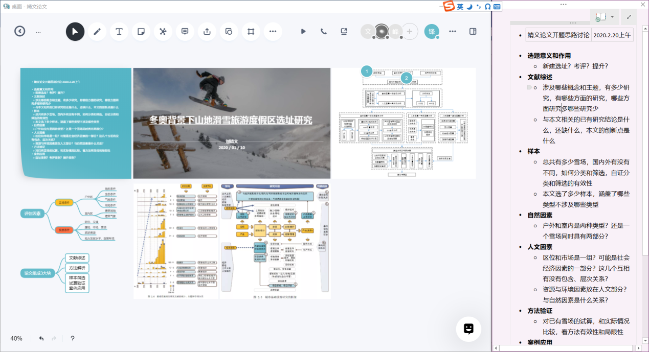 会议桌是一个比较新的、正在开发测试中的平台,疫情期间免费,据悉投资方是小米和快手背后的投资方,该平台的功能和效果目前在国际上是最领先的。在会议桌中,每个人都可以各自贴自己的文档、图片进来,文档可以随意翻页,可以写批注、绘图,可以各自缩放、平移桌面,可以看到别人的鼠标轨迹,可以跟随演讲人的视图,而且这些材料会一直留在平台上,可以随时回顾。
