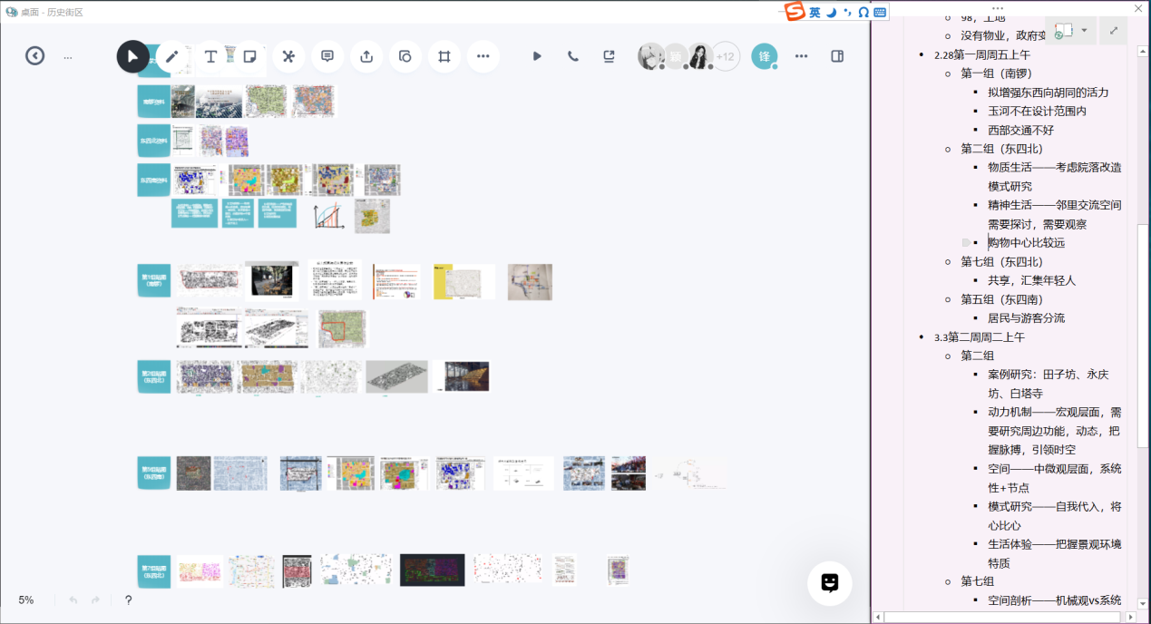 刘老师在设计课教学、研究生研讨中发现,会议桌则成为最主要的平台,各组同学都可以把图纸贴好,轮流演讲,此时Zoom则主要作为语音沟通平台,以及需要做计算机操作演示时的共享屏幕工具。