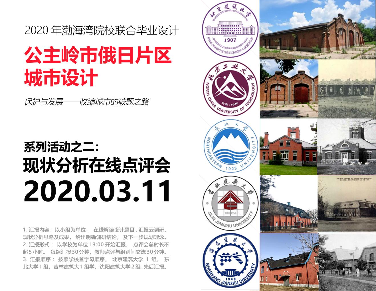 共5组同学按照北京建筑大学、东北大学、吉林建筑大学、沈阳建筑大学的顺序依次进行汇报,每组汇报30分钟。