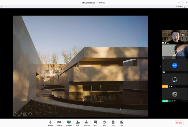 常可回顾了从学习到实践的多个阶段,以及对建筑设计与建筑师理解的变化,随后从概念构思、方案深化、施工进程等角度,详实讲述近期两个实践作品,向线上听众阐述在自下而上的实践研究探索期不断积累的思考,并通过反问看似合理之事,去寻找建筑社会性的契合点,把建筑设计作为与社会交流的媒介。在自由提问阶段,同学们踊跃发言,提出了关于设计出发点、公共性与私密性的平衡等问题,常老师逐一详细解答。