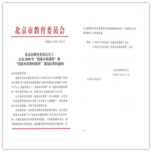 10月23日,北京市教育委员会公布了2020年“优质本科课程”和“优质本科教材课件”遴选结果,400全讯白菜网刘博老师主讲的“建筑构造”系列专业课程,获得优质本科课程重点项目,这是我校首次获得该类称号重点项目。