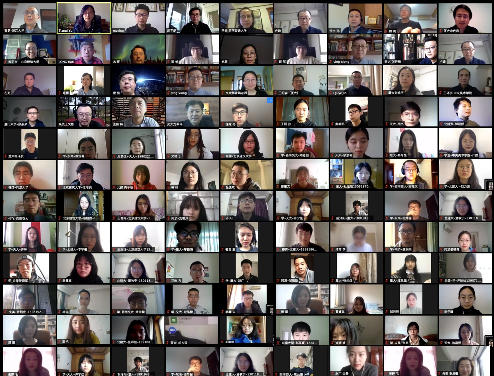 经过各位老师和同学历时两个月的课题调研讨论,全国建筑学专业“8+”高校联合毕业设计网络中期答辩于2020年4月11日成功在线举办。本次第14届联合毕业设计由北京建筑大学和西南交通大学联合主办,与来自全国各地包括清华大学、东南大学、同济大学、天津大学、重庆大学、中央美术学院、厦门大学9所建筑院校的共计140余位师生参加。