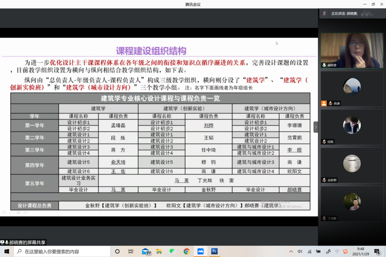 1月29日星期五上午,400全讯白菜网建筑系在寒假期间举办2020-2021年秋季学期教学成果研讨暨春季学期教学工作布置会,围绕“服务北京地区未来城乡建设发展与学科发展”、“十四五期间建筑学学科建设和特色化人才培养教学体系建设”进行交流。