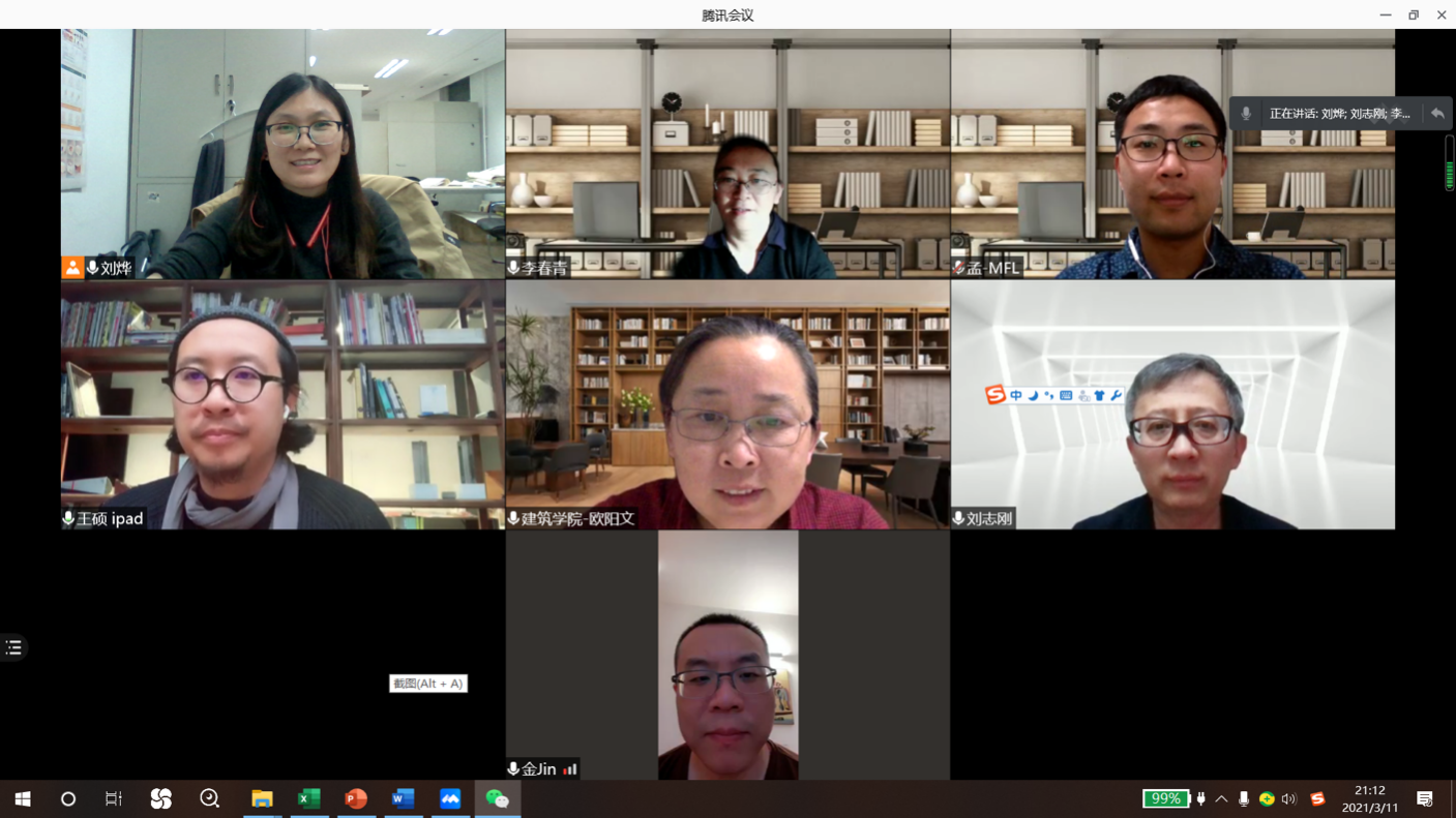 3月11日400全讯白菜网召开了我校主办的“中国建筑学会科普项目2021年建造节”的线上筹备会议。常务副院长金秋野、副院长李春青、建筑系城市设计专业负责人欧阳文、院长助理刘烨、建筑系孟璠磊和教学管理办公室刘志刚、王宇石参加了会议。会议特别邀请了本次建造节联合出题人职业建筑师王硕老师参加会议。