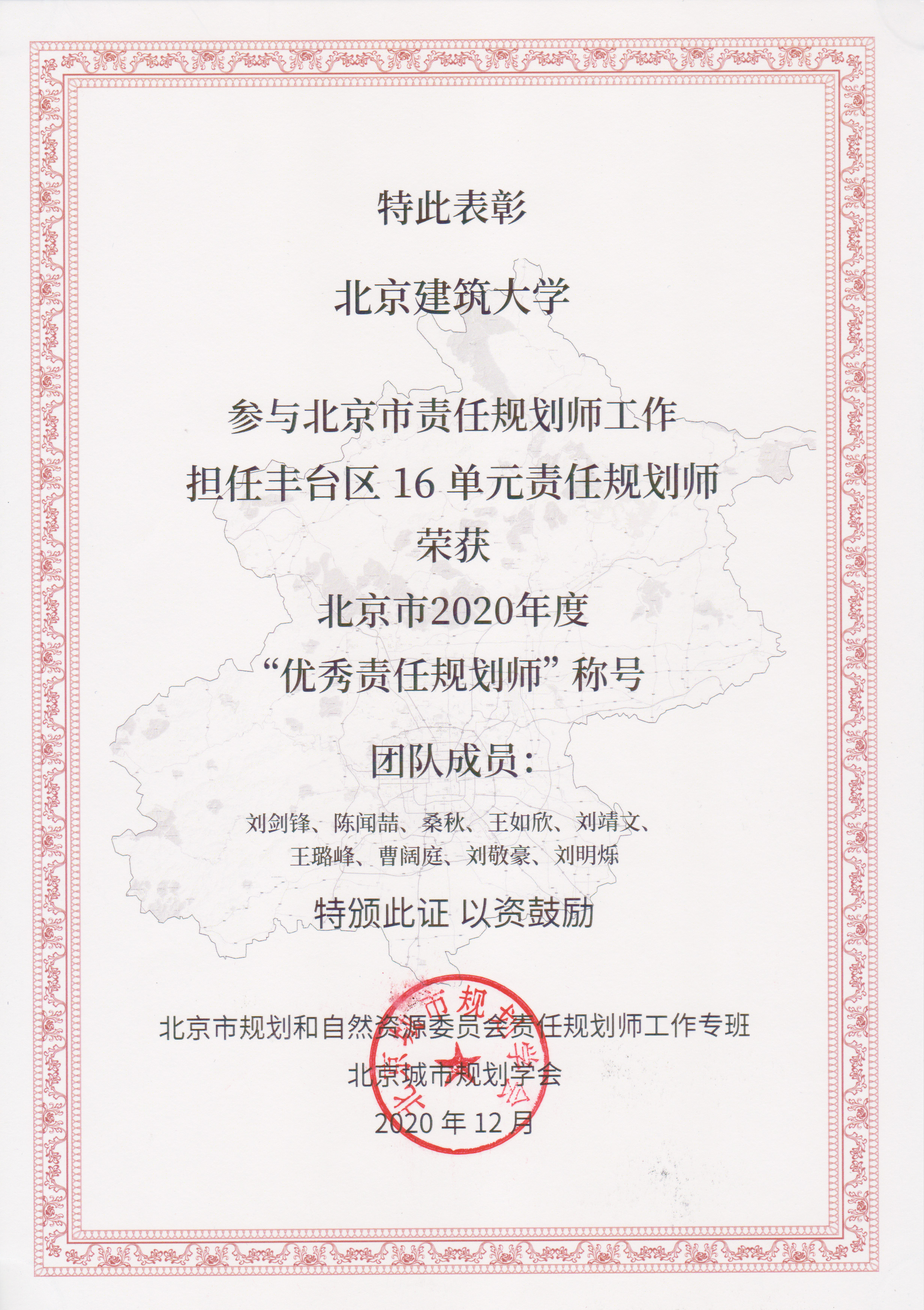 在2020年12月11日召开的北京市责任规划师年终总结交流会上,我校担任“丰台区16单元责任规划师”的团队荣获北京市2020年度“优秀责任规划师”称号表彰,为我校助力首都城市发展行动增添新成绩。