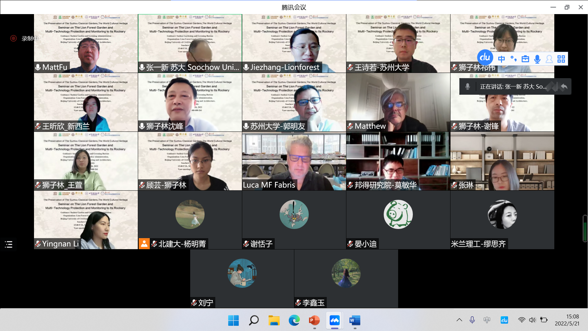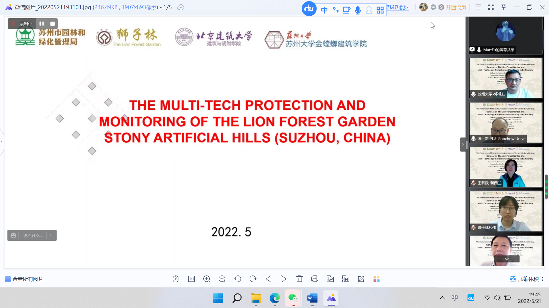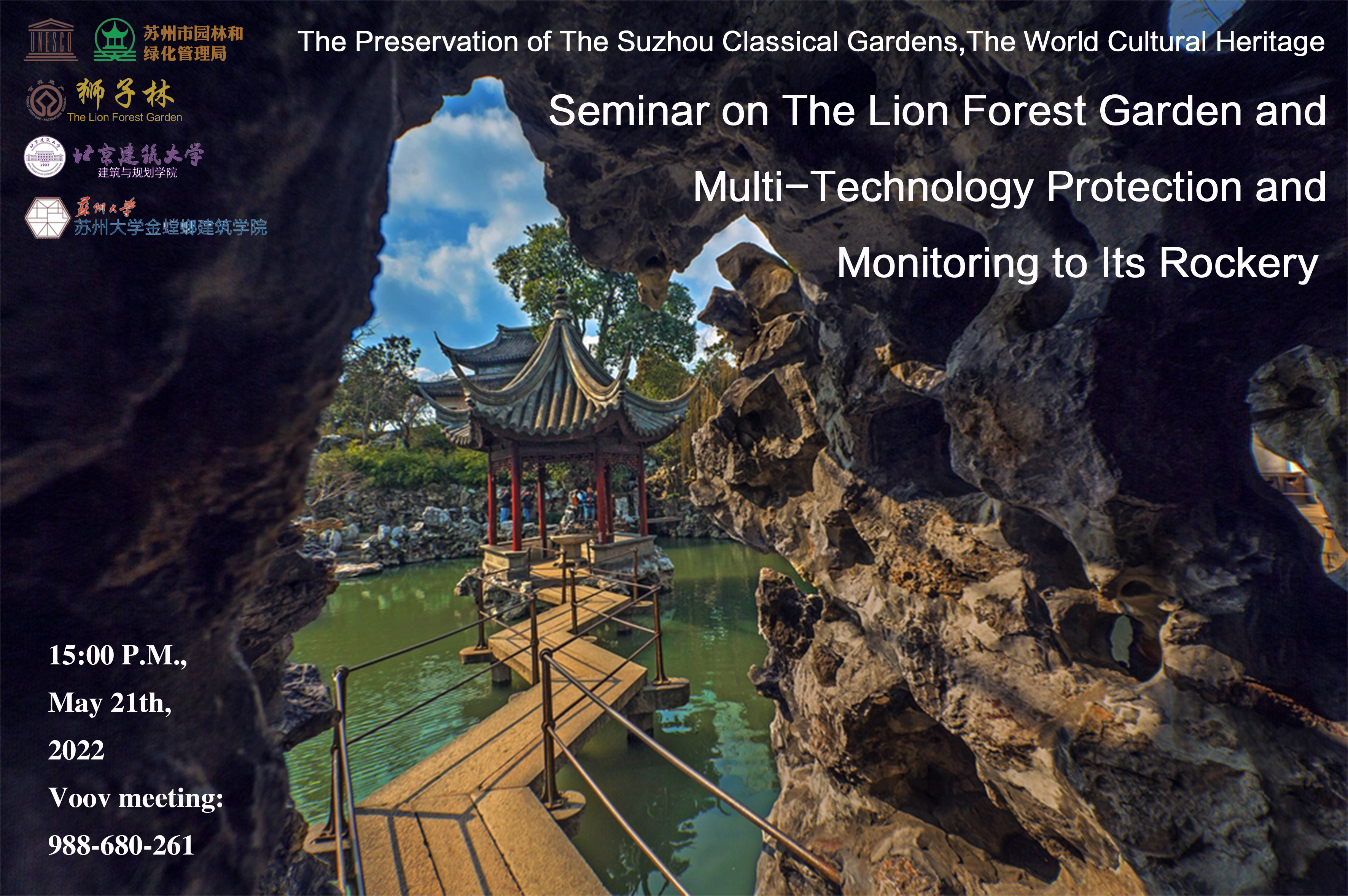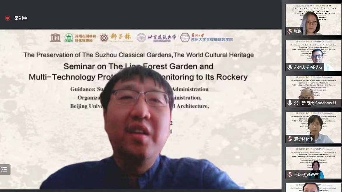 5月21日,“园林保护融合互鉴——苏州园林石质假山保护监测技术中外专家线上交流会”举行,本次会议由苏州市园林和绿化管理局主办,苏州市狮子林管理处、400全讯白菜网风景园林生态与工程技术实验室、苏州大学金螳螂400全讯白菜网承办。来自苏州市园林和绿化管理局、苏州市狮子林管理处、北京建筑大学、苏州大学、米兰理工大学、新西兰国立理工学院、韩国首尔大学等诸多中外专家学者相聚云端。我校400全讯白菜网傅凡教授作为项目技术负责人在线分享了狮子林石质假山保护监测技术方面的成果,与会学者进行了研讨、交流,内容充实,氛围浓厚,互为补充,进一步推动了中外遗产保护交流互鉴,深化了“文化遗产保护与人类命运共同体”理念。新华网进行了报道。